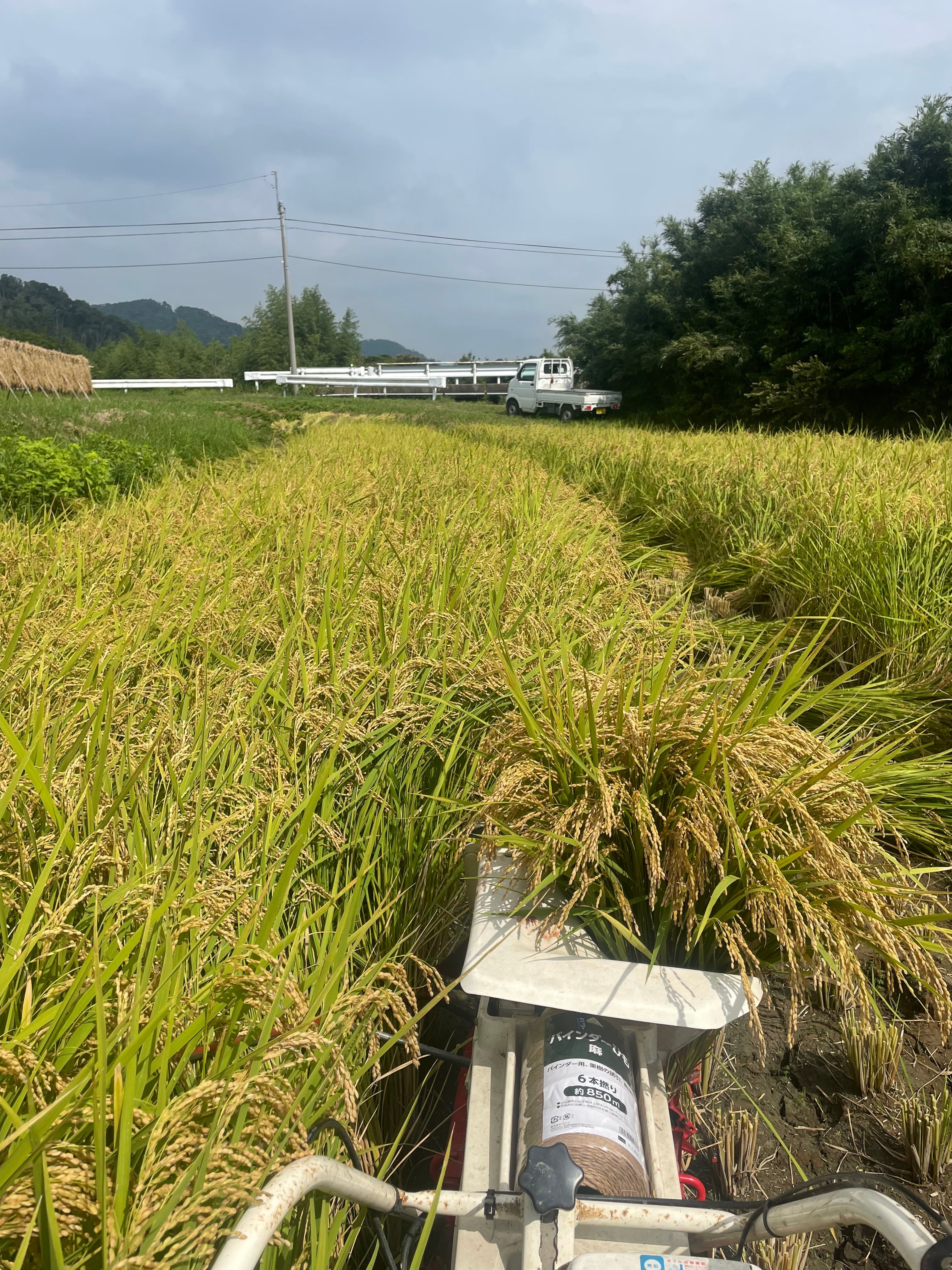 稲刈り後、竿竹に掛けて太陽光と風で1〜2週間かけて天日干しする事で、稲の葉や茎に詰まっている養分が最後まで米粒に凝縮され、旨みのある米ができます。